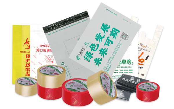 各種環保、降解塑料膠袋制品、封箱膠帶、膠粘制品等原材料、包材、產品和綜合性解決方案